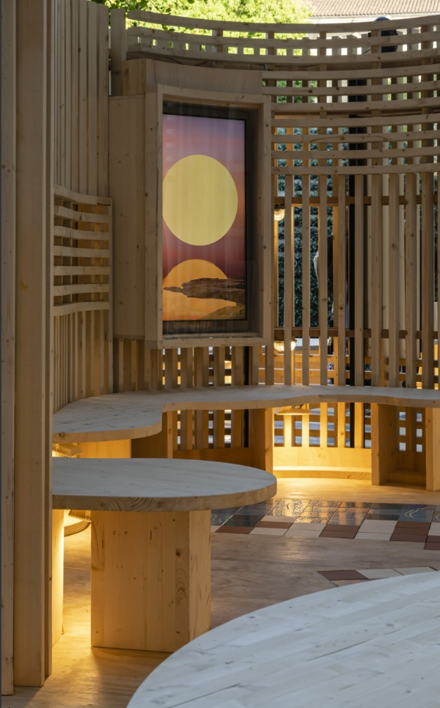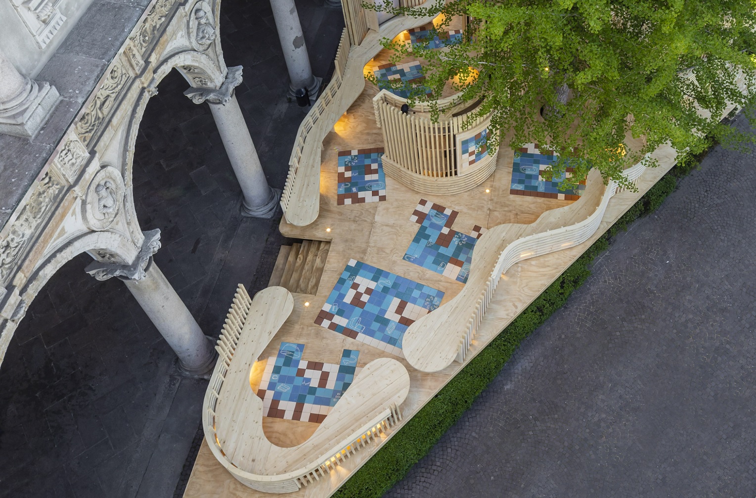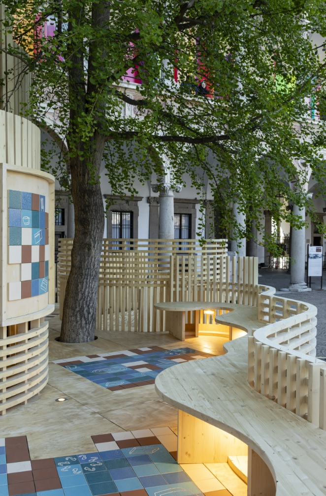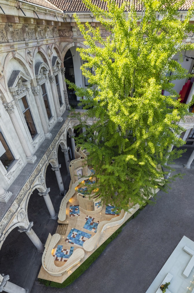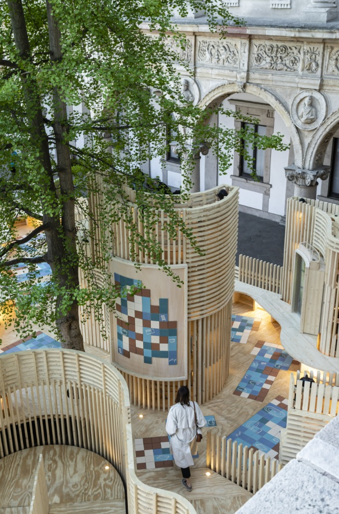 In harmony with the motto Re-Evolution and with a view to environmental sustainability, all the materials that make up the pavilion will be disassembled, recovered, and used in other installations and exhibitions around the world.
