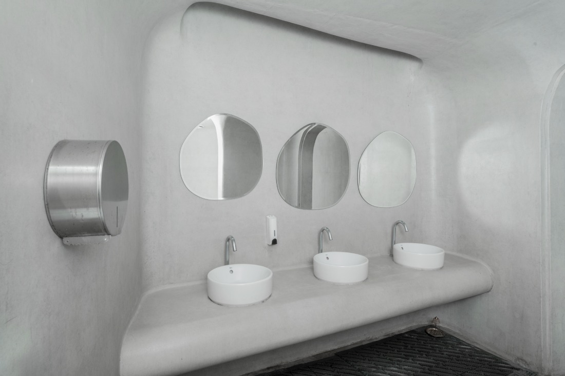 When searching for a countertop basin to place on the bespoke benches of the public bathrooms, the ‘Round’ basin from the best-selling ‘The Gap’ collection was a natural choice. Now recognised as a modern classic in contemporary bathroom design, its sleek minimalist and curvilinear shape complement the organic forms of the bathroom furniture, enhancing their gentle fluidity. In the same sense, the avant-garde, contoured design of Roca’s ‘Loft’ touchless faucets have become an extension of the space’s striking visual language. The sober lines of the electronic ‘Euret’ urinal also acts as a design feature, while providing important energy and water efficiency with its smart features.