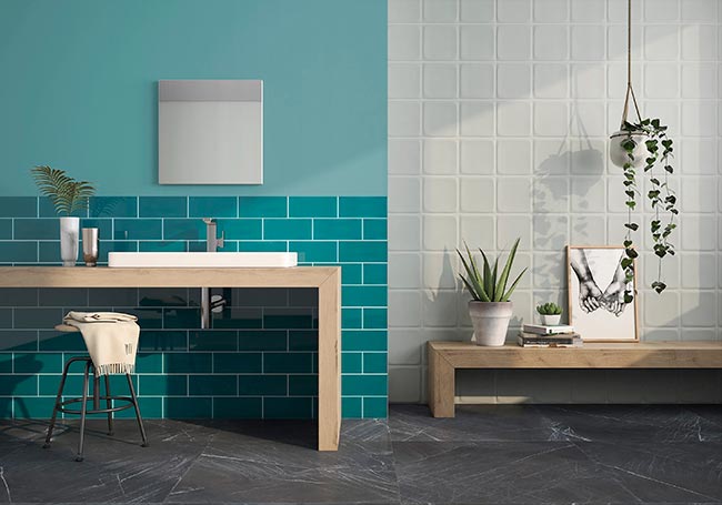 As if it were a painting, dare to bring life to every corner of your bathroom. Choose colored tiles, original accessories, black faucets or basins and toilets in different finishes.