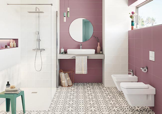 Hydraulic tiles, with reliefs, patchwork-like or inspired by wallpaper coexist with smooth pieces that recall terrazzo, cement or clay. Beyond ceramic tiles, color finds its space in basins, shower trays, faucets or bathroom accessories that brighten our mood with charismatic gestures.