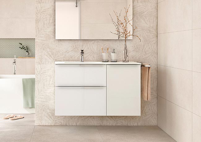 After deciding the ideal combination of modules, doors and drawers, it is time to choose the furniture finish that matches the interior design of your bathroom space. Urban, classic or modern… regardless of your style, you will surely find the perfect hue among the four proposed by Storia: Gloss White for an impeccable effect, Nordic Ash inspired by nature, textured City Oak with a rustic feel or Arctic Grey to add an industrial touch.