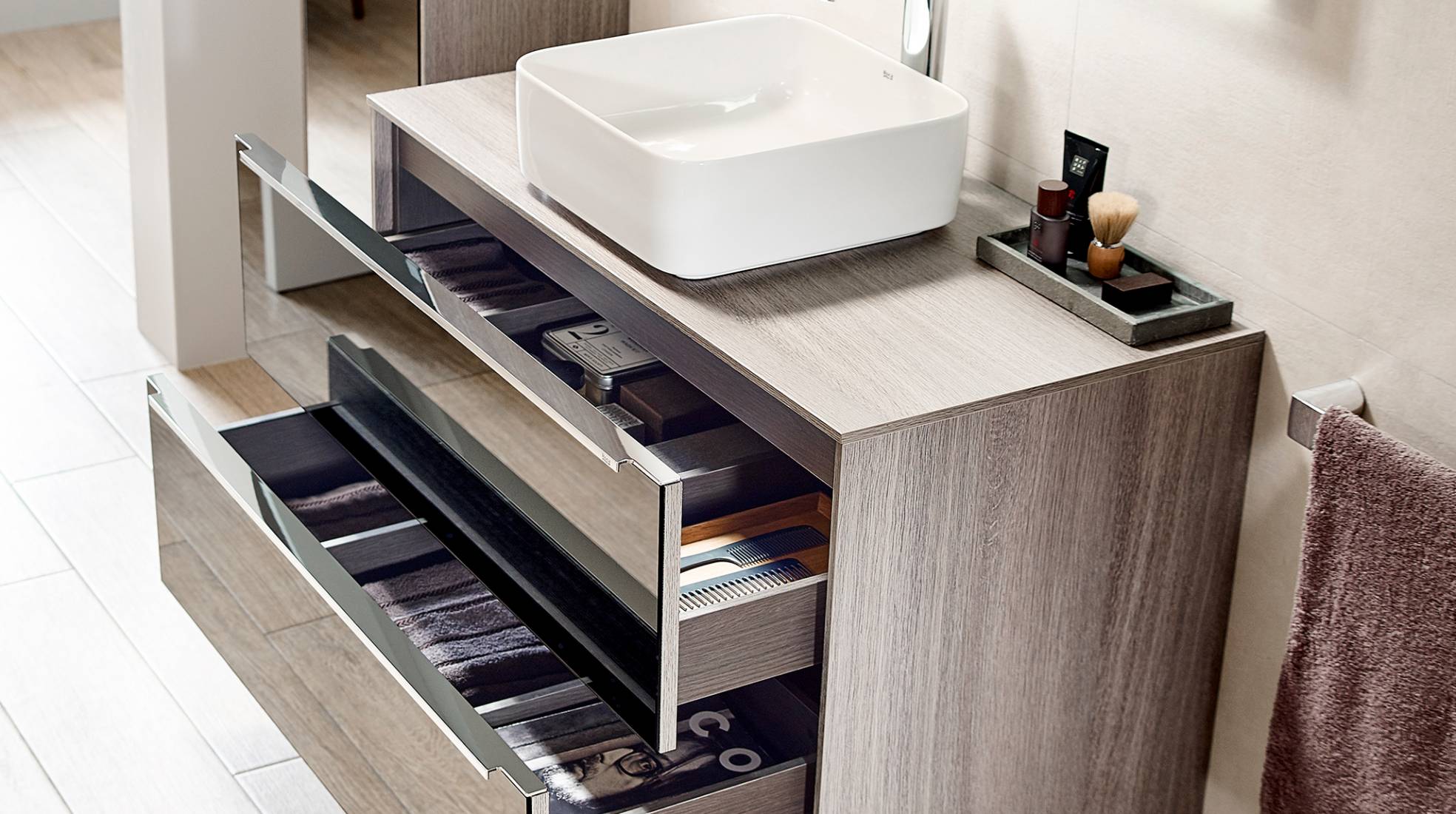 This is perhaps one of the matters we devote less time to when we are planning the renovation of a bathroom but this is one of the issues you will be happy you took into account from the very beginning. Stop and think of your real needs. Do you live alone or with your family? Will you need to have everything stored or do you prefer to commit to design? You will find proposals that fit every single need in Roca´s bathroom furniture catalogue: the storage capacity of Victoria-N, the intelligent organisation of Prisma, the design of Inspira or Stratum-N, the bathroom furniture unit with Bluetooth® speakers that will change the way you enjoy your bathroom forever.