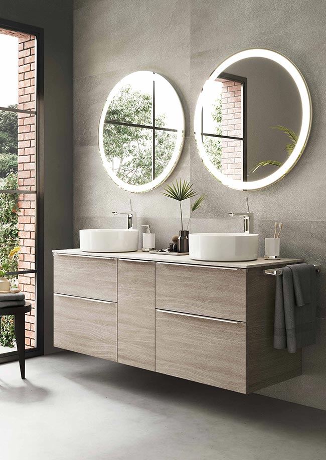 Regardless of the style of your home, you will find the perfect design in The Gap, as it stands out for its large finger pull handle and its pure straight lines. The ideal option for small bathroom spaces is the compact 500 mm unit and starting with this dimension, you can choose multiple configurations of up to 1200 mm. Choose the ideal Gap Square or Round basin for your base unit or highlight the shape of the bowl with an over countertop option. There are multiple finishes to choose from -Gloss White, Textured City Oak, Nordic Ash, Arctic Grey or Anthracite Grey- that will allow you to add a personal touch to your interior design.