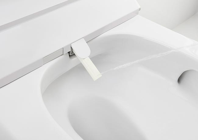 As technology and innovation should always be at the service of our everyday life, In-Wash® is extraordinarily easy to clean. Its retractable nozzle cleans itself before and after each use to guarantee maximum hygiene and if you search for greater disinfection, you just need to remove the tip of the nozzle or easily extract the seat and the cover to thoroughly clean them. Furthermore, all In-Wash® models feature the Rimless technology, which removes the rim present in traditional WCs, providing a design with uniform inner walls, with no nooks or corners where dirt might build up.