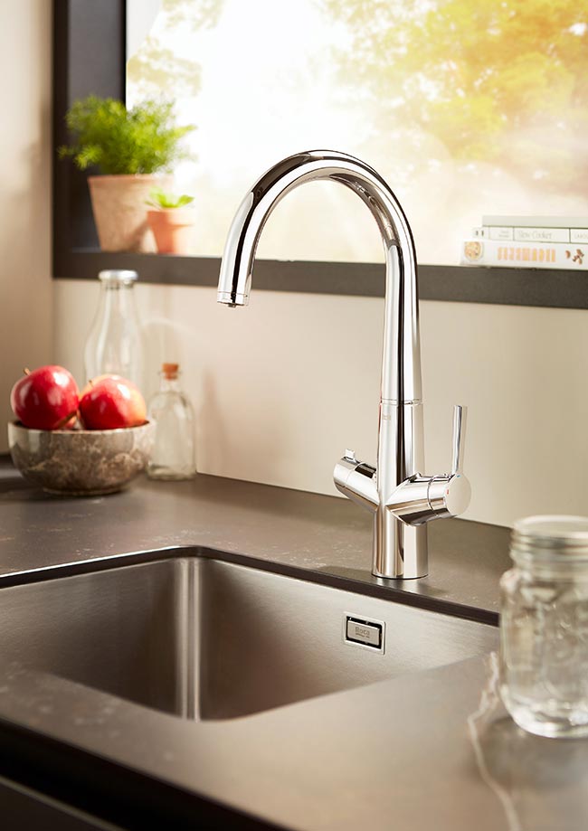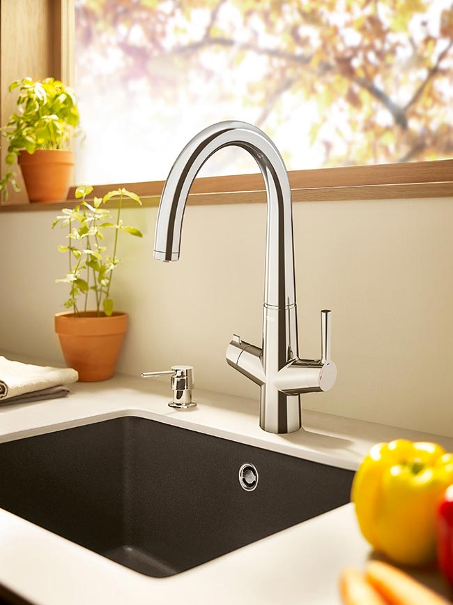 The Syra-F faucet will allow you to enjoy high-quality water without any taste of chlorine and without having to buy plastic bottles.