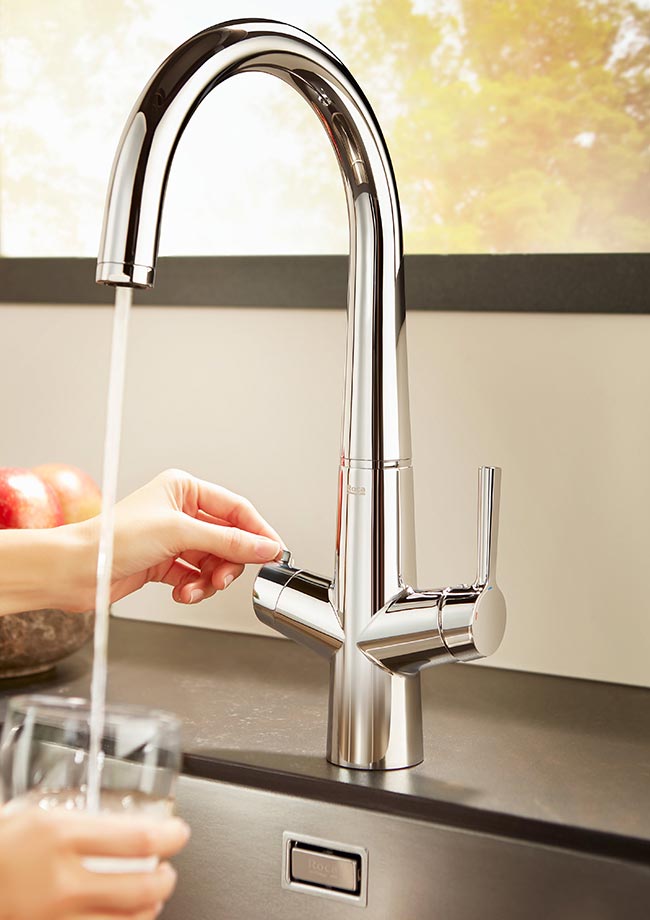 Without bottled water and with no complex purifying systems, Roca presents a kitchen faucet with filter that will allow you to enjoy water with the best taste reducing your carbon footprint and the pollution produced by one-way packaging. Syra-F features a triple filtering system that returns water with no impurities or chlorine taste. Thus, you will be able to safely and comfortably hydrate yourself, directly from your kitchen faucet. Join the healthy trend of drinking 2 liters of water per day in the easiest, most affordable and environmentally-friendly way possible.