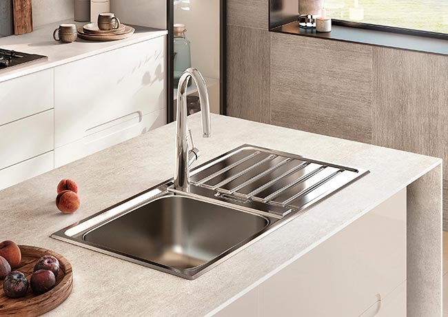 The popular metallic finish provides maximum resistance and durability in the stainless steel kitchen sinks with an array of different combinations. The most common solution in kitchen refurbishments is also the one offering a greater variety in terms of options, not only with square and rectangular bowls, but also round ones and with one or two bowls.