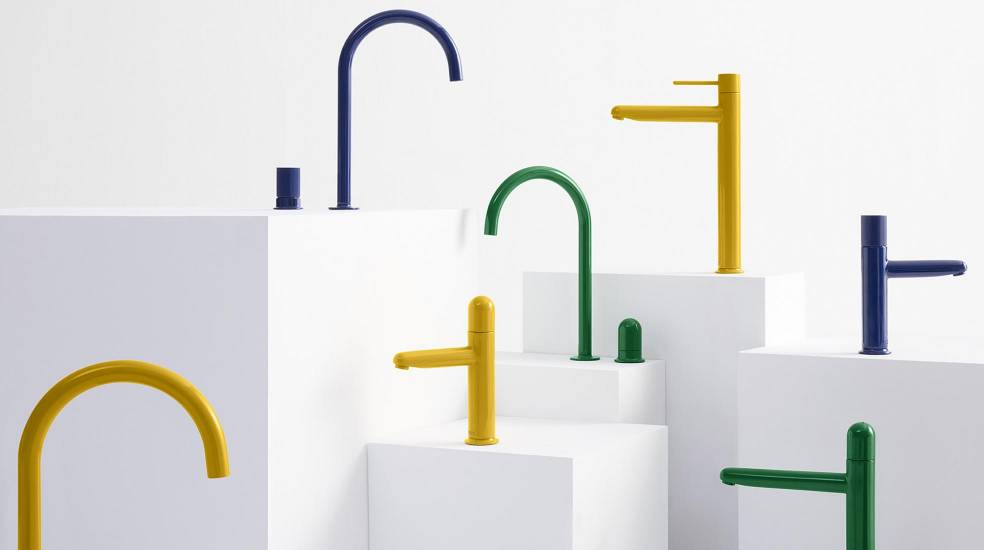 (Pictured: Nu faucets collection in honey yellow, mint green and cobalt blue finishes)