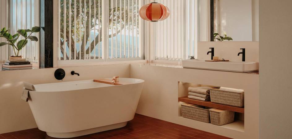 (Pictured: bath from Tura Collection, Ona built-in shower mixer in matt black)