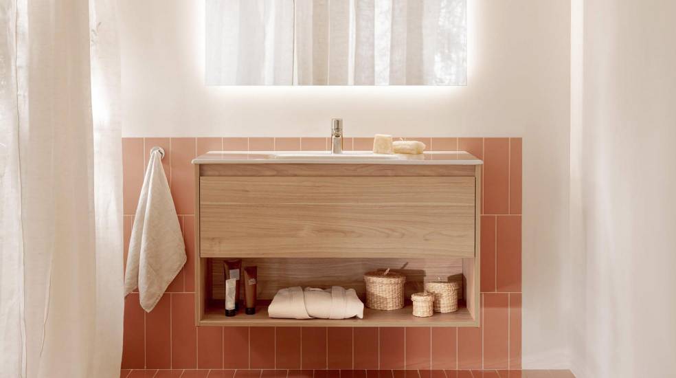 The Ohtake collection’s countertop washbasins and the Luna Frame mirror (available in March 2024) bring organic shapes to the bathroom, connecting us to the earth. The Gap and Tenet furniture, as well as Savana countertops feature cosy wood in walnut and Nordic ash finishes.
