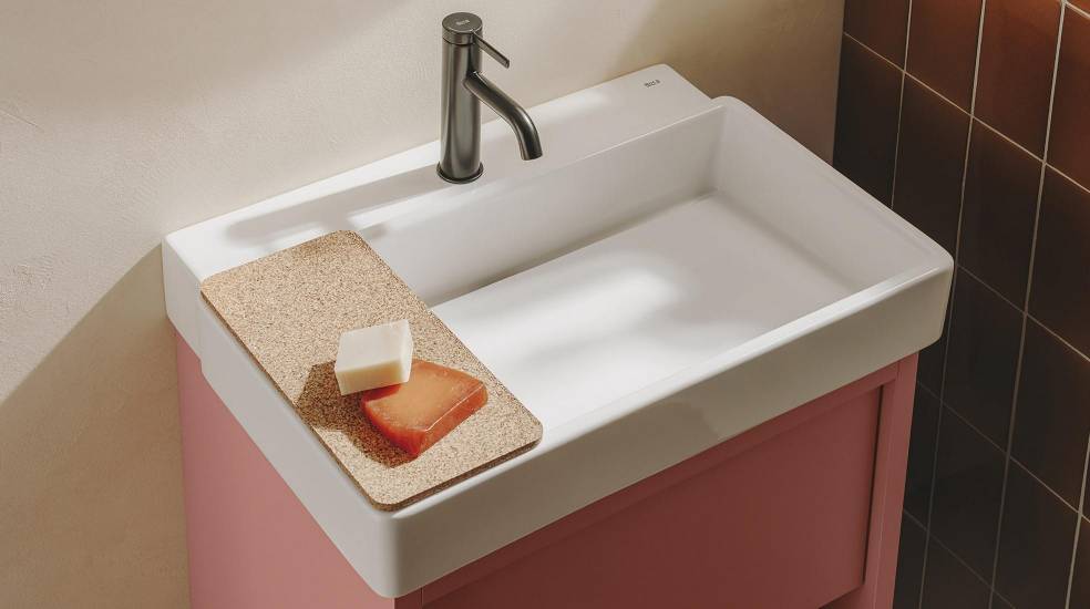 Nature-inspired materials, such as Roca’s Ona collection, and the architectural shapes and earthy surfaces of Tura activate our senses. The Raina bathtub promotes relaxation and wellbeing. The Cratos shower tray and Ariane bathtub have a rough finish, while the Pyros shower tray has a soft sandy texture. These materials offer a complete tactile experience.