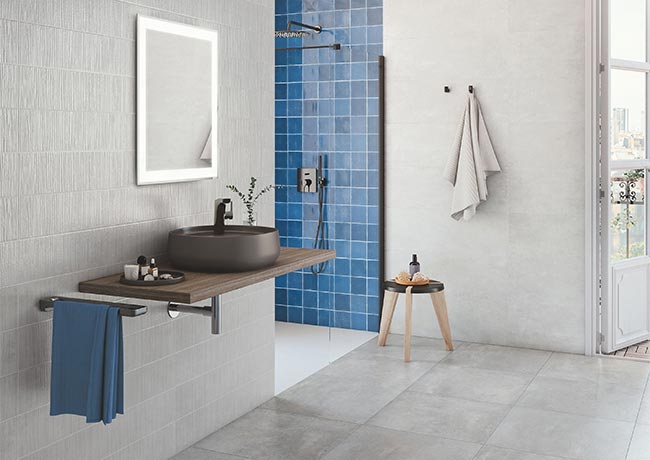 Evocative and warm, natural wood furniture units add personality to any space. In open and unobstructed interiors, opt for the Savana countertop in City Oak to make your basin stand out as the theme of your interior design. And if your home is defined by minimalism, install a Natura base unit with basin, an open structure with a Nordic style that combines white color and natural wood.