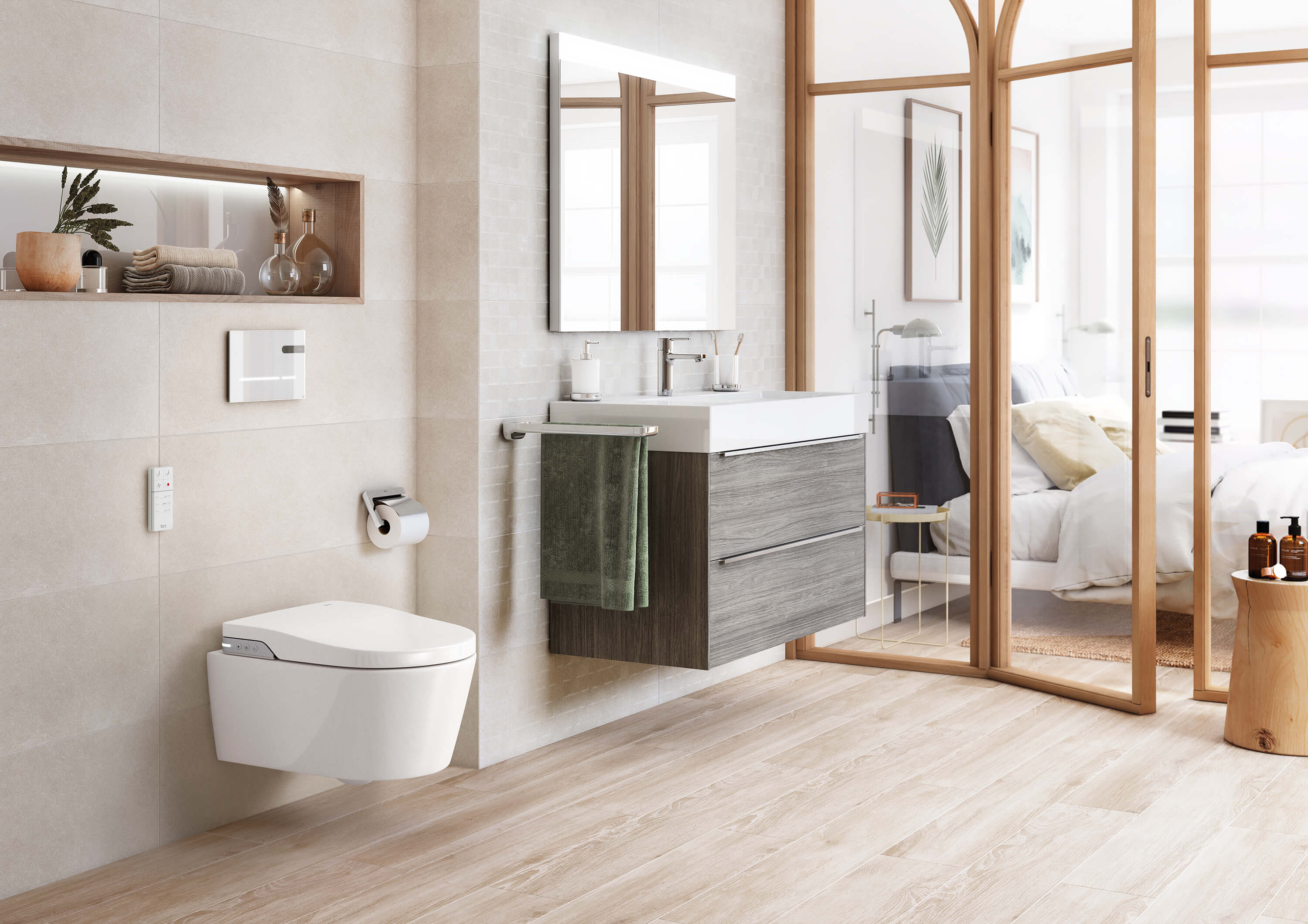 Enhance your personal cleansing routine with In-Wash® Inspira, now featuring the In-Tank® technology, which integrates the tank into the bowl. With no need for a concealed cistern, it takes up less space and offers greater freedom in the design of bathroom spaces.