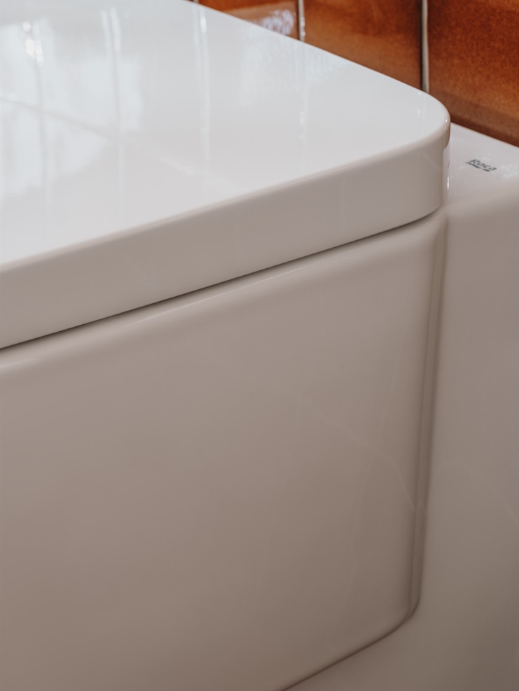 The height of toilets and bidets is designed for greater comfort (42 cm) and the material is gentle and pleasing to the touch. The Roca Rimless® technology is super functional, offering the lowest possible noise emission and water consumption. Its exclusive antimicrobial Supraglaze® glazing makes it difficult for dirt to adhere to the surface while being ultra-hygienic and easy to clean.